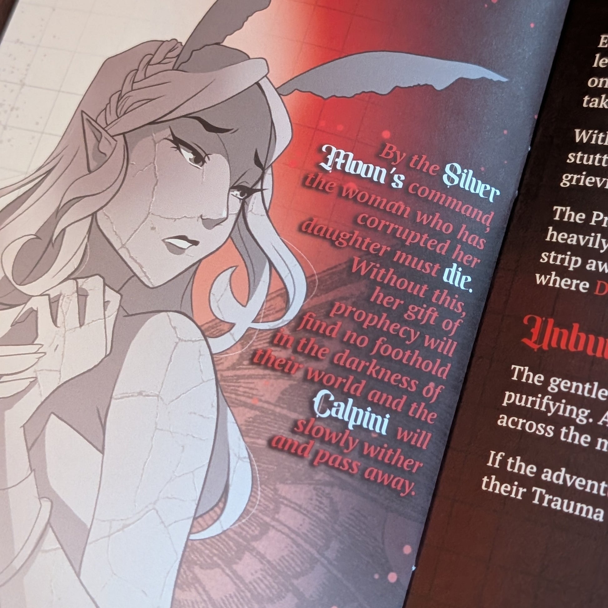 Designed for use with LOOTTHEROOM's 'A Dungeon Game' system and compatible with MÖRK BORG, CALPINI is perfect for OSR and fans of the rules-lite style of play with a strong horror theming. Lean into your Scars and Trauma through mechanics and roleplay and see if you can survive long enough to uncover the mystery of the corrupted Priestess.